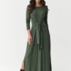 Maxi dress made of viscose is a combination of comfort and timeless elegance. The soft, breathable material makes it exceptionally comfortable to wear throughout the day, while the long sleeves and striking waist tie beautifully accentuate the silhouette. The round neckline suits every body type and style. Subtle side slits add lightness and a feminine character to the overall look, while providing freedom of movement. This is a model that will work perfectly for everyday wear, for work, and for meetings with friends. Simply change the accessories to give the outfit a more casual or elegant character. Thanks to the classic colors, anthracite, black, burgundy, khaki, and chocolate, you can easily match it to your wardrobe and create many unique outfits. A maxi dress with a waist tie is a proposal that combines a modern look, comfort, and versatility. It looks great with both boots and a leather jacket, as well as paired with elegant heels or sporty sneakers.