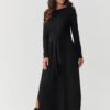 A maxi dress made of viscose is a combination of comfort and timeless elegance. The soft, breathable material makes it exceptionally comfortable to wear all day long, while the long sleeves and stylish waist tie beautifully accentuate the silhouette. The round neckline suits every body type and style. Subtle side slits add lightness and a feminine touch to the overall look, while providing freedom of movement. This is a model that will work perfectly for everyday wear, for work, and for meetings with friends. Simply change the accessories to give the outfit a more casual or elegant character. Thanks to the classic colors – anthracite, black, burgundy, khaki, and chocolate – you can easily match it to your wardrobe and create many unique outfits. A maxi dress with a waist tie is a proposal that combines a modern look, comfort, and versatility. It looks great with both ankle boots and a biker jacket, as well as paired with elegant heels or sporty sneakers.