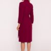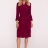 Stylish dress in a wrap-around style, made of smooth fabric with a soft finish. The V-neckline is finished with an elegant shawl collar, which adds sophistication to the whole look. The 7/8 length sleeves with rolled cuffs add lightness and a modern character. The waist is accentuated with a tying belt, making the dress beautifully highlight the silhouette and adjust to the figure. The top is fitted, and the bottom is straight with a slight looseness, providing comfort and freedom of movement. The knee-length makes the model perfect for both elegant and more formal stylings. The dress is partially lined (95% polyester, 5% elastane), ensuring comfort and perfect fabric placement. Designed and made in Poland.