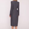 Elegant pencil dress, made of smooth fabric with a melange structure. The classic, round neckline and long, straight sleeves give the whole outfit elegance, while the shoulder pads subtly emphasize the silhouette, creating a modern, distinctive line. The fitted cut slightly tapered towards the bottom beautifully shapes the figure, and the high slit at the back ensures freedom of movement and adds a sensual character. The dress is fully lined, drapes perfectly, and guarantees wearing comfort. The knee-length makes it an ideal choice for both business styling and more formal occasions. The covered zipper at the back provides a neat finish. Designed and made in Poland.