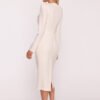 Elegant pencil dress made of smooth fabric with a melange structure. The classic, round neckline and long, straight sleeves give the whole outfit elegance, while the shoulder pads subtly emphasize the silhouette, creating a modern, distinctive line. The fitted cut slightly tapered towards the bottom beautifully shapes the figure, and the high slit at the back ensures freedom of movement and adds a sensual character. The dress is fully lined, drapes perfectly and guarantees comfort when worn. The knee-length makes it an ideal choice for both business styling and more formal occasions. The hidden zipper at the back provides a neat finish. Designed and made in Poland.