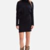 Dress made of high-quality ribbed fabric with a weight of 250 g, which beautifully drapes on the silhouette and ensures comfort when wearing. The model is put on over the head, without pockets and lining, which makes it light and comfortable. Its unique character is given by the high collar with soft lining, subtly enveloping the neck. Long, batwing sleeves tapered towards the bottom create a striking shoulder line, and the looser top combined with a fitted pencil bottom gives the dress a blouse-like silhouette that emphasizes the waist and slims the figure. The mini length, reaching just above the knee, makes the dress perfectly combine elegance with feminine lightness. Designed and sewn in Poland from fabric produced in Łódź, it is a proposal for women who appreciate local craftsmanship, high quality, and timeless style.
