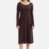 Dress made of soft, ribbed fabric weighing 250 g, which ensures comfort and natural fit to the silhouette. The model put on over the head, without pockets and lining, maintained in a light and feminine form. The classic, round neckline with a subtle cutout emphasizes the neck, and the long sleeves slightly flared at the cuffs add a delicate elegance to the whole. Decorations in the form of a wavy bottom and sleeve finishes introduce a hint of romantic lightness. The cut combines a fitted top with a slightly flared bottom, which beautifully shapes the silhouette and ensures freedom of movement. Midi length, reaching to mid-calf, gives the dress a universal, timeless character. Designed and sewn in Poland from fabric produced in Łódź, it is a combination of quality, feminine elegance, and local craftsmanship.
