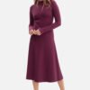 Dress made of high-quality ribbed fabric weighing 250 g, which beautifully fits the silhouette and ensures comfort when wearing. The model is put on over the head, without pockets and lining, maintained in a modern, feminine style. The stand-up collar adds elegance and subtly elongates the neck, while the long, fitted sleeves with a thumb cutout emphasize the slimness of the arms and give the whole a sporty character. The cut combines a fitted top with a waistline cut and a slightly flared bottom, which beautifully shapes the silhouette, accentuates the waist, and adds lightness to movement. Midi length, up to mid-calf, makes the dress simultaneously feminine, elegant, and practical. Designed and made in Poland from fabric produced in Łódź, it is a combination of quality, comfort, and timeless style.