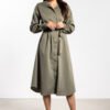 The midi dress with a shirt-like silhouette combines classic style with comfort. The simple line with buttons along the entire length makes the model suitable for many occasions. The classic collar and long sleeves with cuffs emphasize the elegant character. A belt made of the same material allows you to wear the dress loosely or tied at the waist, accentuating the feminine silhouette. The knee-length adds versatility, perfect for work, meetings, and special occasions.