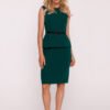 An elegant pencil dress with a peplum is a classic in a modern version. Made of smooth, pleasant to the touch fabric, it beautifully emphasizes the female silhouette, while providing comfort when worn. The model has a delicate, semi-circular neckline and a sleeveless cut, which will work perfectly both in the office and during elegant celebrations. The waist is clearly marked with a belt and a subtle peplum, which optically shapes the silhouette and gently masks the hip and abdominal areas. The bottom of the dress has a fitted pencil cut, which emphasizes the legs and gives the whole a classic character. At the back, there are two concealed zippers, thanks to which the dress fits perfectly to the figure. The whole is complemented by a thin belt in a contrasting color, fastened with a button stylish accent, which adds character. Designed and sewn in Poland with attention to detail and high quality workmanship.