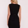 An elegant pencil dress with a peplum is a classic in a modern edition. Made of smooth, pleasant to the touch fabric with a lining, beautifully emphasizes the female silhouette, while providing comfort when wearing. The model has a delicate, semi-circular neckline and a sleeveless cut, which will work perfectly both in the office and during elegant occasions. The waist is clearly marked with a belt and a subtle peplum, which visually shapes the silhouette and gently masks the hip and abdomen area. The bottom of the dress has a fitted, pencil cut, which emphasizes the legs and gives the whole a classic character. At the back, there are two covered zippers, thanks to which the dress fits perfectly to the figure. The whole is complemented by a thin belt in a contrasting color, fastened with a stylish button, which adds character. Designed and sewn in Poland with attention to detail and high quality craftsmanship.