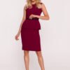 The elegant pencil dress with a peplum is a classic in a modern edition. Made of smooth, pleasant to the touch fabric with a lining, beautifully emphasizes the female silhouette, while providing comfort. The model has a delicate, semi-circular neckline and a sleeveless cut, which will work perfectly both in the office and during elegant events. The waist is clearly marked with a belt and a subtle peplum, which optically shapes the silhouette and delicately masks the hip and abdomen area. The bottom of the dress has a fitted, pencil cut, which emphasizes the legs and gives the whole a classic character. At the back, there are two concealed zippers, thanks to which the dress perfectly adjusts to the figure. The whole is complemented by a thin belt in a contrasting color, fastened with a stylish button, which adds character. Designed and sewn in Poland with attention to detail and high quality.