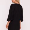 Elegant dress in a trapeze cut, made of smooth, pleasant to the touch fabric. The model stands out with impressive, wide batwing sleeves of 3/4 length, which give the whole a lightness and subtle character. The round neckline subtly emphasizes the feminine silhouette, and the loose waist provides comfort and does not cling to the figure. The bottom of the dress is straight, which combined with the loose top creates a harmonious, elegant whole. The dress is fastened with a hidden zipper at the back, making it look exceptionally aesthetic. The mini length above the knee gives it a modern character, making it an ideal choice for both elegant receptions and less formal meetings. Designed and sewn in Poland with attention to every detail.