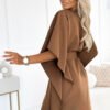 Minimalism that makes an impression. This butterfly-style dress by Numoco combines a loose, flowing line with a waist belt, allowing you to shape perfect proportions in seconds, from everyday elegance to evening outings. The soft, pleasant to the touch fabric beautifully flows with movement, and the asymmetrical wings/poncho subtly mask the shoulder and waist areas. The simple round neckline and knee-length create a modern, timeless look. Made in Poland, the quality of the Numoco brand. Opt for timeless simplicity and comfort. Choose a Numoco dress and enjoy Polish quality that looks great in any situation. The elegant butterfly dress with a belt and bow by Numoco is a combination of comfort and feminine style. Made in Poland from soft, pleasant material, it subtly flows around the silhouette and accentuates the waist. Perfect for everyday wear, work, or elegant meetings.