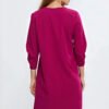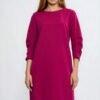 Stylish dress with a relaxed fit and loose A-line silhouette. The round neckline adds classic elegance, while the 3/4 sleeves with original pleats attract attention and give it a unique character. The knee-length makes the dress both comfortable and versatile. Fastened at the back with a zipper, it guarantees comfort and perfect fit. Ideal for both everyday wear and more formal occasions.