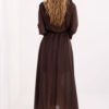 An elegant dress with a flared cut is a stylish proposal suitable for everyday wear, work, and formal occasions. Made of a blend of lyocell and polyester, it beautifully drapes on the silhouette, providing comfort and a subtle, flowing effect. The model has a lining that increases wearing comfort and emphasizes the quality of workmanship. The dress enchants with a smooth finish and well-thought-out details. In the waist, there is a wide sash for tying, which elegantly shapes the waist and adds an elegant character to the whole. Sewn-in shoulder pads give the silhouette a distinct line and modern proportion. The long sleeves and tied neckline add a feminine, stylish look to the dress, and the maxi length emphasizes its chic and timeless elegance. The lack of fastening makes the model comfortable and easy to put on. This is the perfect dress for women who appreciate class, comfort, and refined details.