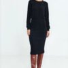 This universal dress is a must-have in every wardrobe. Made of soft, ribbed fabric, it ensures comfort throughout the day. The round neckline adds subtlety, and the long raglan sleeve with a cuff provides freedom of movement. The elastic waistband accentuates the silhouette and adds a feminine shape to the dress. The midi length makes the dress both elegant and comfortable. The slit at the back adds originality to the dress and makes movement easier. Pulled over the head, it has no fastenings. This dress is an investment in your wardrobe. Its universal cut and pleasant material will make you feel comfortable and stylish in any situation. It is an item that should be in the wardrobe of every woman who values simplicity and elegance.