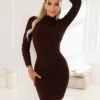 The Sweater Dress by Numoco Basic is a model that combines the comfort of knitwear with a feminine, fitted cut. Made of elastic, ribbed material, it beautifully accentuates the waist and silhouette, providing comfort throughout the day. The warm chocolate shade gives it a noble character and makes it perfect for autumn-winter stylizations. Long sleeves and a soft turtleneck add elegance to the whole, and the minimalist form allows you to easily combine the dress with boots, ankle boots, or a classic coat. It is an ideal proposition for work, meetings, dates, or everyday outings whenever you want to look stylish and modern. Add this dress to your cart and create a styling in which you will feel feminine, confident, and exceptional every day.