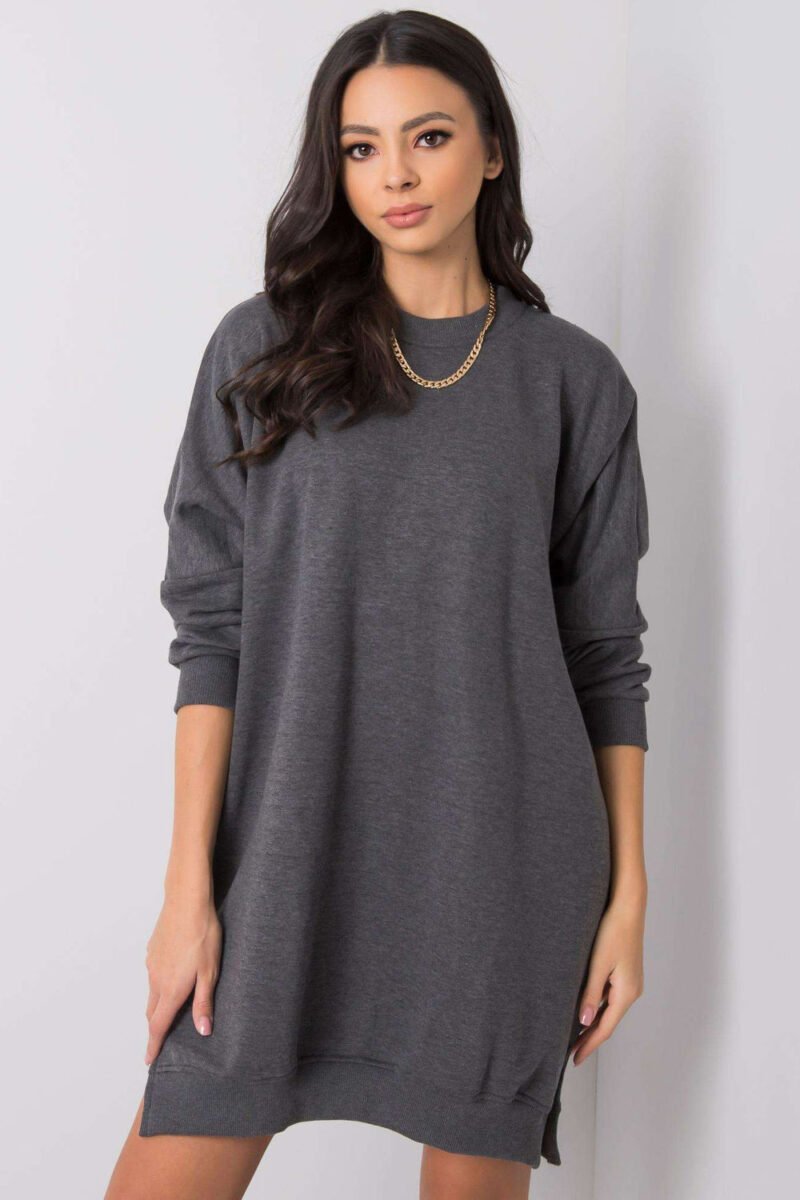Comfortable sweatshirt dress with a loose fit is the perfect choice for everyday stylizations, comfortable like sweatpants, yet feminine and universal. Made of high-quality cotton with a touch of elastane, it provides softness, breathability, and gentle elasticity, making it fit perfectly on the silhouette and guaranteeing full freedom of movement. The model has a short length and long sleeves, making it perfect for all year round. The round neckline gives the dress a classic, timeless character. The smooth, uniform color scheme emphasizes the minimalist style of the dress and makes it easy to create many everyday outfits. The dress has no closure, it is easily put on over the head. It is a great choice for women who appreciate comfort, modern, sporty look in a feminine version. Perfect for everyday wear, work, a walk, or a meeting with friends.