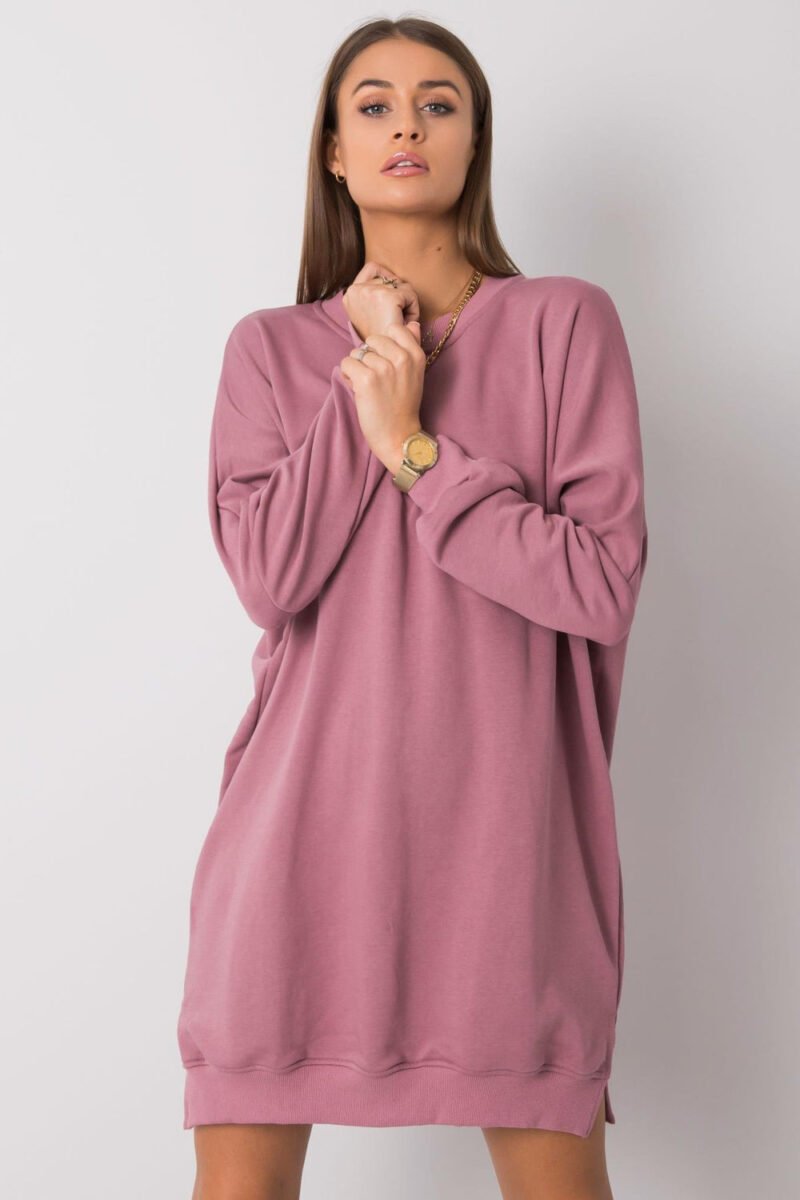 Comfortable sweatshirt dress with a loose fit is the perfect choice for everyday styling, comfortable like sweatpants, and at the same time feminine and versatile. Made of high-quality cotton with a touch of elastane, it provides softness, breathability, and gentle elasticity, which makes it fit perfectly on the silhouette and guarantees full freedom of movement. The model has a short length and long sleeves, which makes it perfect for all year round. The round neckline gives the whole a classic, timeless character. The smooth, uniform color scheme emphasizes the minimalist style of the dress and makes it easy to create many everyday outfits. The dress does not have a fastening, it is comfortably put on over the head. It is a great choice for women who appreciate comfort, relaxation, and a modern, sporty look in a feminine version. Perfect for everyday wear, work, a walk, or meeting friends.