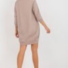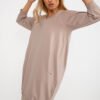 Comfortable sweatshirt dress with a simple cut is a perfect choice for everyday stylizations, combining comfort with a casual style. The smooth pattern gives it a universal character, making it easy to match with various accessories. The knee-length model with practical slip pockets ensures functionality and freedom of movement. The 3/4 sleeve makes the dress suitable for most of the year, and the feminine neckline subtly emphasizes the silhouette and adds lightness. The lack of fastening emphasizes the simple, comfortable form of the model. The dress is made of high-quality cotton and elastane blend, making it soft, elastic, and pleasant to the touch. It is an ideal choice for women who value comfort, practical details, and timeless style for everyday wear.