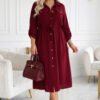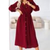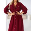 There is a moment when you enter a room and silence speaks more than compliments. It’s not a coincidence, it’s a well-tailored burgundy shirt dress (shirtdress) that works for your self-confidence. This shade emphasizes sensuality, and the midi cut gives you just the right amount of elegance for work, meetings, and evenings when plans for a moment turn into staying longer. Numoco Basic focuses on comfort and feminine shape: a shirt top with a collar, buttons all the way down, and a waist tie that allows you to adjust the dress to your silhouette, also in plus size version. And on top of that: European production, which means quality that you feel from the first wear. How to wear it? For everyday wear, combine it with ankle boots or sneakers and delicate jewelry. For work, choose classic heels or loafers, and in the evening add a stronger accent – red lips, gold earrings, and you’re ready. This burgundy plus size shirtdress easily adapts to you, not the other way around. Tip: Button up higher for a more classic look. Leave one or two unbuttoned when you feel like subtle sensuality.