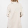 Comfortable shirt dress with a loose fit, perfect for everyday styling. The model is buttoned up, with a classic collar that gives the whole a timeless character. The smooth pattern makes the dress extremely versatile and easy to style. Made of pleasant to the touch cotton with elastane, it provides comfort and freedom of movement. The long sleeve with the option of rolling up allows you to adjust the dress to the season and individual preferences. The knee-length and slightly rounded bottom gently emphasize the silhouette and add lightness. On the front, there are practical pockets with flaps that emphasize the casual style of the dress. An excellent proposition for everyday wear, for work, a walk, or a meeting in a relaxed atmosphere.