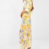 A summer maxi dress with a flared cut is a combination of lightness, elegance, and feminine style. The model dazzles with a floral pattern that gives the outfit freshness and subtle charm, perfectly fitting the summer atmosphere. The wrap neckline beautifully accentuates the neckline and décolletage, while the 3/4 sleeves with a ruffle finish add a romantic character to the whole. From the waist down, the dress is made of pleated material that elegantly flows with movement and gives the silhouette lightness. There is a fastened belt at the waist, allowing you to emphasize feminine curves and adjust the model to the figure. The dress has no fastening, ensuring comfort when wearing. Made of a combination of polyester and viscose, it is breathable, light, and comfortable. It will work perfectly in everyday styling, for work, and for formal occasions, just choose the right accessories to create an elegant, summer look.