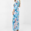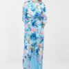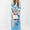 The summer maxi dress with a flared silhouette is a combination of lightness, elegance, and feminine style. The model enchants with a floral pattern that gives the styling freshness and subtle charm, perfectly fitting into the summer atmosphere. The wrap neckline beautifully emphasizes the neckline and collarbone, and the 3/4 sleeves with a ruffle finish add a romantic character to the whole. From the waist down, the dress is made of pleated material that gracefully moves and gives the silhouette lightness. There is a fastened belt at the waist, allowing you to emphasize feminine shapes and adjust the model to the figure. The dress has no fastening, which ensures comfortable wear. Made of a combination of polyester and viscose, it is breathable, light, and comfortable. It will work perfectly in everyday stylings, for work, and for special occasions, just choose the right accessories to create an elegant, summer look.