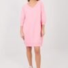 A comfortable sweatshirt dress with a simple cut is a perfect choice for everyday stylizations, combining wearing comfort with a casual style. The smooth pattern gives it a universal character, making it easy to match with various accessories. The knee-length model with practical slip pockets ensures functionality and freedom of movement. The 3/4 sleeve makes the dress suitable for most of the year, and the feminine V-neck subtly emphasizes the silhouette and adds lightness. The lack of fastening emphasizes the simple, comfortable form of the model. The dress is made of high-quality cotton and elastane blend, making it soft, elastic, and pleasant to the touch. It is an ideal choice for women who value comfort, practical details, and timeless style for everyday wear.