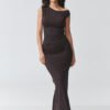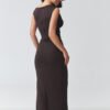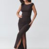 This fitted maxi dress is the perfect combination of class and modern style. The ankle-length model beautifully accentuates the silhouette, while the subtle ruching at the waist and hips visually shapes the figure, ensuring a slimming effect. It is an excellent choice for women who appreciate elegant evening dresses with a timeless cut. The top with a delicate boat neckline showcases the shoulders and neck, giving the outfit a lightness and feminine character. Sleeveless design makes the dress perfect for both formal events and cocktail stylings. The high slit on the leg adds sensuality and freedom of movement to the whole look. Made of elastic, pleasant to the touch material, this fitted dress ensures comfort throughout the day or evening. It is the perfect dress for a wedding, party, as well as a stylish option for a date or elegant dinner. Choose a feminine maxi dress with a slit that will highlight your assets and make you feel exceptional in any situation.
