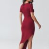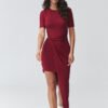 Stylish asymmetrical dress is a perfect combination of elegance and modern design. The fitted cut beautifully emphasizes the silhouette, and the striking gathering at the waist shapes the figure and gives the outfit a unique character. Short sleeves and comfortable, elastic material make the gathered dress perfect for both everyday wear and special occasions. The asymmetrical bottom with an elongated panel adds lightness and originality, making the elegant dress stand out and fit into the latest fashion trends. It emphasizes femininity and pairs perfectly with both heels and casual footwear, creating a fashionable smart casual style. It is the perfect choice for parties, dates, family celebrations, or evening outings. If you are looking for a dress that combines comfort and style, this fitted dress with an asymmetrical bottom will hit the mark.
