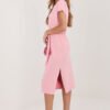 A simple, summer everyday dress made of pleasant to the touch cotton, which ensures comfortable wear even on warmer days. The smooth material gives it a universal character, making it easy to match to different stylizations. The model with a length above the knee, short sleeves, and a classic, round neckline guarantees comfort and freedom of movement. An additional advantage is the slit at the bottom on the left side, which gives the dress lightness and subtly emphasizes the legs. The set includes a tie belt, which allows you to emphasize the waist and adjust the cut to the silhouette. It is an ideal proposal for everyday wear for a walk, shopping, or summer meetings.