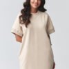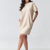 Stylish and extremely comfortable oversize sweatshirt dress is the perfect choice for women who appreciate the combination of comfort and a fashionable look. The loose fit provides full freedom of movement, and the minimalist cut makes the model fit perfectly into everyday stylizations. The model has short sleeves and a classic, high neckline, giving it a versatile character. An additional advantage are practical pockets on the sides, which increase functionality and comfort of use. The appropriate length makes the dress look great both on its own and paired with favorite accessories. It is an excellent casual dress for everyday wear, perfect for walks, shopping, travel, or meetings in a relaxed atmosphere. You can wear it with sneakers, trainers, or more elegant shoes, creating various stylizations.