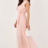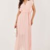 A flared midi dress is the perfect choice for summer days, combining lightness, comfort, and feminine style. It will work great in everyday stylizations, providing freedom of movement and an elegant look. The model made of high-quality polyester, viscose, and elastane blend is lightweight, pleasant to the touch, and fits well on the silhouette. The smooth pattern emphasizes the universal character of the dress, making it easy to match with various accessories. The dress has a wrap neckline, which subtly highlights the neck and adds feminine charm to the overall look. The sleeveless design makes the model perfect for warm days. There is a tie at the waist in the form of a sash, allowing for a perfect fit and emphasizing the silhouette. Decorative ruffles on the sides in the upper part of the dress add a touch of lightness and romantic style. The bottom from the waist is pleated, which beautifully flows in movement and emphasizes the flared cut. An additional advantage is the knee-length lining, which increases wearing comfort and ensures better fabric draping. This is an excellent choice for women who appreciate style, comfort, and subtle feminine details in summer stylizations.