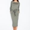 Elegant women’s dress created for women who appreciate fashion and comfort. Dress with a loose cut, boat neckline. Dress has long sleeves with the possibility of podpięcia. At the waist dress is tied.