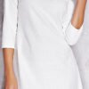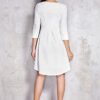 Elegant 3/4 sleeve dress with a flared cut. Made of fabric with a fine embossed pattern. Extended back.