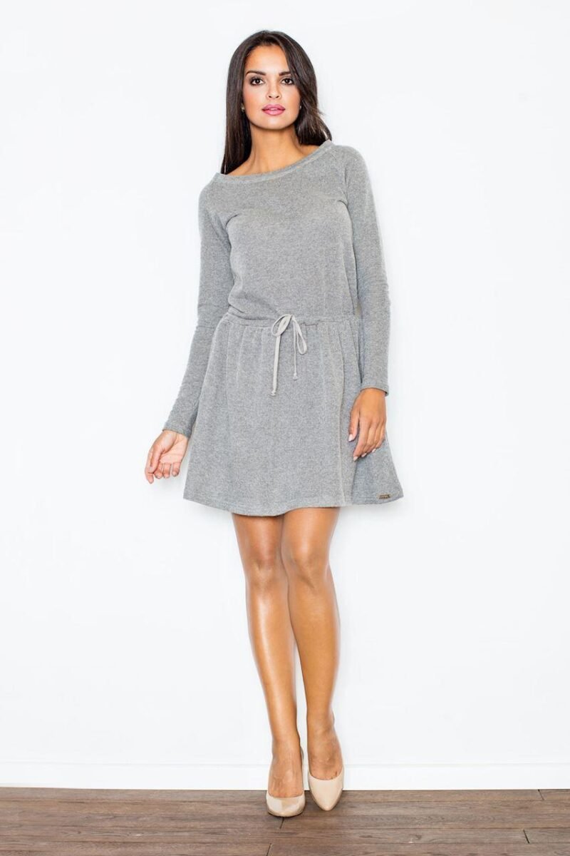 A casual long-sleeved dress made of airy cotton. Boat neckline, tie at waist emphasizing waist. A flared bottom gives it lightness and airiness. Extremely comfortable proposition that will be perfect for work in combination with stilettoes, as well as with ballerinas for afternoon meetings.