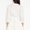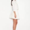 Red ecru dress with lowered bodice, collar, snap fastening, quilted skirt, elastic waistband so you can adjust the length of the dress.