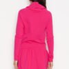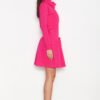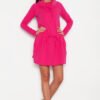 Dress with loose turtleneck. Long sleeve flared skirt. At the turtleneck and at the waist decorative strings for adjustment.