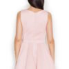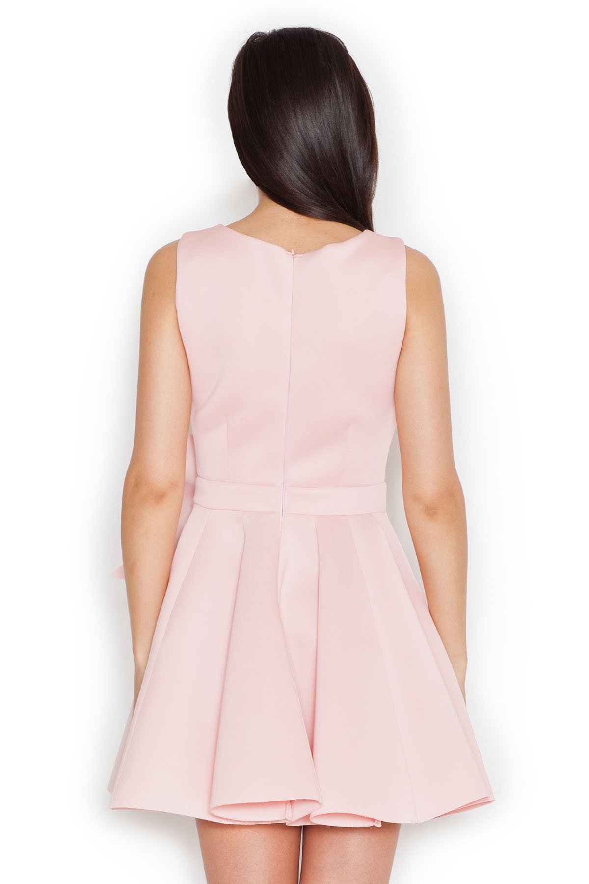 Impressive dress with wide straps. A bow at the side. Top fitted, bottom flared. Dress fastened with a covered zipper.