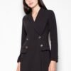 Elegant jacket dress fastened with decorative buttons that also appear at the sleeves. Dress available in classic colors. Can also be worn as a jacket.