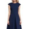 This classic midi dress owes its professional look to a fitted top with mini sleeves and a trapeze skirt with a contrasting pleat in the middle, which also draws attention to the strongly accentuated waist.