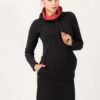 Sporty dress with practical side slit pockets made of colourful knitted sweatshirt. Chimney neckline that can be placed or turned up to give the effect of a turtleneck, long sleeves of about 62 cm. The inner part of the chimney in a contrasting color. The original raw ends at the bottom and at the sleeves can be effectively rolled up, manipulating the length of the dress and sleeves. Height of the chimney 23 cm.