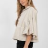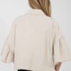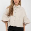 Stylish women’s denim jacket in a casual version, perfect for spring and summer. Made of high-quality cotton, it provides comfort for everyday wear. The short cut beautifully emphasizes the silhouette, and the bottom and sleeves finished with trendy fraying add lightness and character to the whole. The model is fastened with buttons, has practical patch pockets at the front. 3/4 sleeves with a ruffle introduce a subtle, feminine accent that perfectly breaks the classic denim style. The jacket is unlined, making it perfect for warmer days. It is a versatile option for everyday stylizations, ideal for both dresses and jeans or skirts.