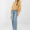 Stylish women’s denim jacket in a casual edition, perfect for everyday wear. Made of high-quality cotton, it provides comfort and a versatile character. A short model with a classic collar and long sleeves, buttoned up. The bottom of the jacket is finished with a trendy fray, giving the whole a slightly rock accent. Embroidered flowers placed on the left side of the jacket at the front, sleeve, and back add originality, creating an impressive and feminine detail. A practical pocket on the right side at chest height emphasizes the model’s utilitarian character. An excellent choice for everyday styling, both with a dress, jeans, or a skirt.