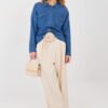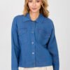 Classic women’s denim jacket in a casual style, perfect for everyday styling. The model fastens with buttons, has a classic collar and long sleeves, which will work for most of the year. The smooth pattern emphasizes the universal character of the jacket and allows for easy combination with various wardrobe items. The jacket is made of high-quality cotton with elastane and polyester, which ensures comfort, flexibility, and a good fit to the silhouette. The standard length guarantees comfort and a timeless style. On the front, there are practical pockets with flaps at chest height, which add functionality to the overall design and emphasize the classic denim style. An excellent choice for everyday wear, for work, walks, or meetings in a casual atmosphere.
