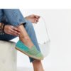Mint openwork espadrilles Gordana are the perfect choice for summer! Made of delicate material, they provide comfort and lightness when worn. Their beige rubber sole ensures stability and comfort while walking. The slip-on closure makes it easy to put on and take off shoes quickly. These espadrilles will be a perfect addition to summer wardrobe and ideal for summer walks or outdoor meetings. Lining: No. Collection: Summer.