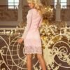 Lace dress with neckline and long sleeves, pastel pink. Classic and elegant. Polish production. Numoco