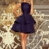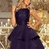 LAURA – dress with heavily flared skirt and lace – navy blue. Fastened at the back with a covered zipper. Numoco brand. Polish product.