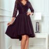 Asymmetrical black exclusive dress with longer back, 3/4 sleeves, neckline and lace. The skirt with a longer back will be perfect for dancing. Polish production. The Numoco brand.