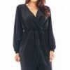 Envelope top of the dress beautifully exposes the neckline. Elastic waist to fit the figure. Long, flared sleeves finished with a cuff. Folded bottom of the dress beautifully exposes the legs. The dress is made of soft and flexible velour. Designed and sewn in Poland.