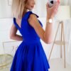 Very girly dress model, available in beautiful colors. Top tied at the shoulders in beautiful bows. Perfectly composed with a slightly flared bottom. Dress fitted at the waist, slightly extended at the back with an open back. Dress is fastened with a covered zipper, has a lining.