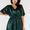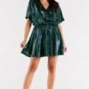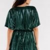 Short, flared dress with short sleeves and a sweetheart neckline. The waist is creased with an elastic band to fit the figure. Dress sewn on an elastic lining. The dress was manufactured in Poland.